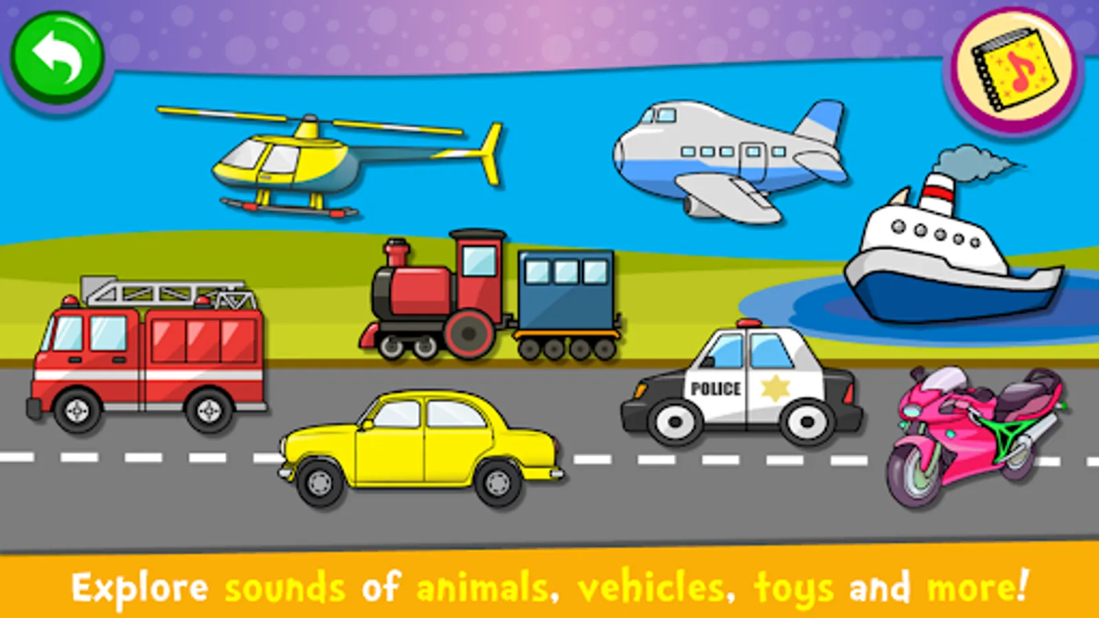 Everyone can play and enjoy exploring different sounds (animals, transportation, comic sounds, among others) and learn to pronounce the colors, flags, geometric figures, numbers and letters of the alphabet in different languages.