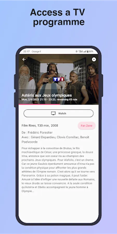 Here are in detail the functionalities proposed by TV Fan Zone: