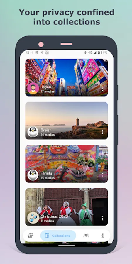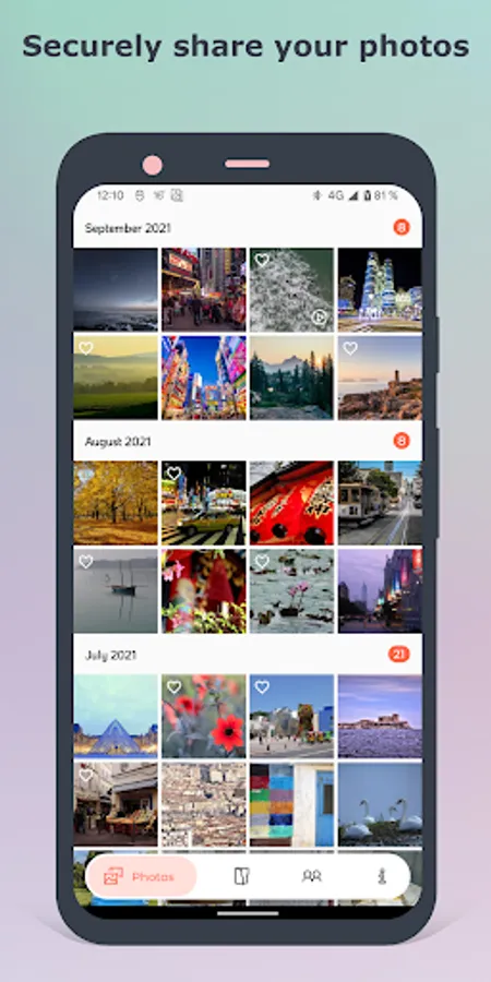 • Your photos and videos are not saved in any cloud server, but directly transferred towards the devices of your friends. Sharing with Poltreder is fully secure and encrypted.