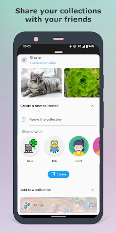 • If you decide to remove a friend from accessing a collection, the collection (incl. all the photos and videos) will be also deleted from your friend's device.