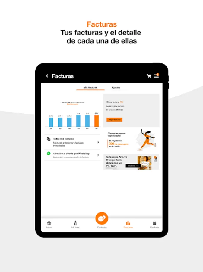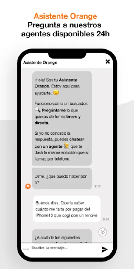 • Orange Assistant. If at any time you need the help of one of our agents, chat with them through the Orange Assistant, they will offer you a 24/7 solution.