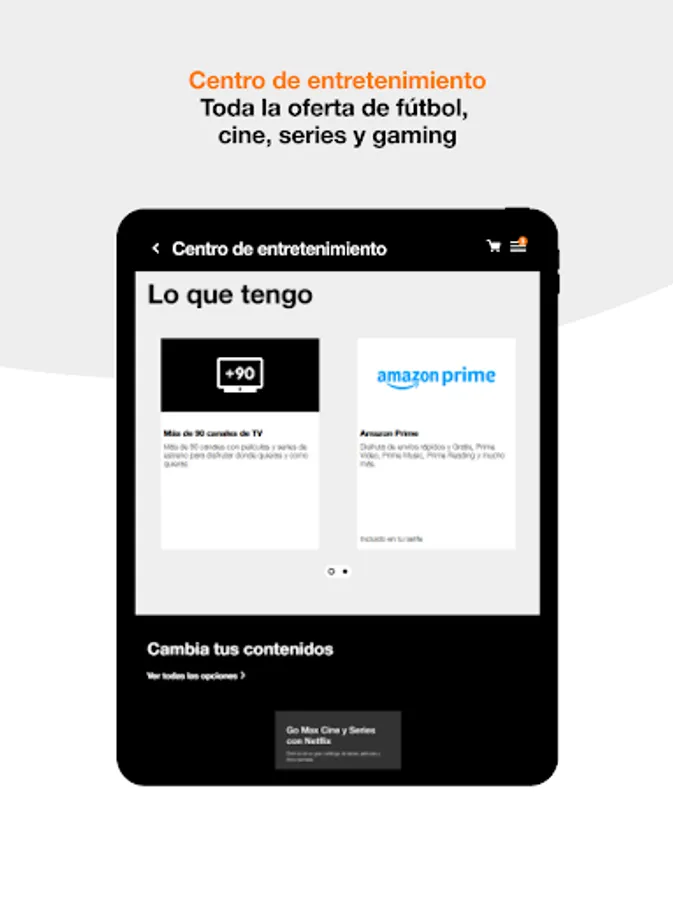 • Enjoy the Entertainment Center. Access and activate the entire offer of Soccer, movies, series and gaming. Activate Dazn, Amazon and Netflix.