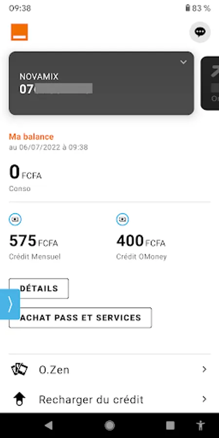 • Reload a friend quickly! Either with the transfer of credit, or with a top-up card, or with your Orange Money account