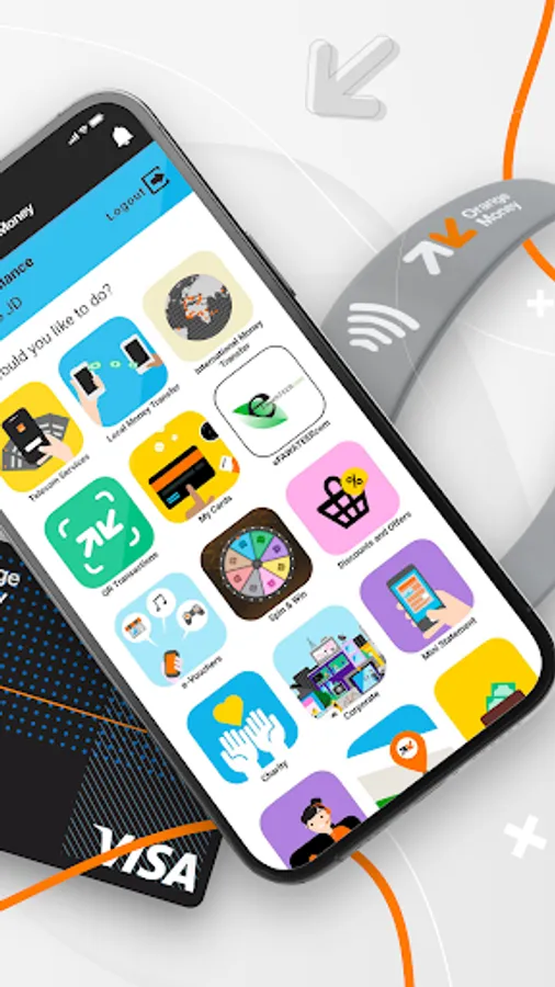 Orange Money is an electronic wallet which is a simple and digital alternative to conduct and manage all your financial services and transactions in your life. Make more time for yourself and your loved ones by using Orange Money services, and pay Post Paid bills, refill prepaid accounts, access eFAWATEERcom services, send domestic transfers, cash in and out through Orange shops, authorized Points of Sale, Partners and ATM’s, with the ability to shop online and use your Visa companion card while traveling around the world, and many other services.
