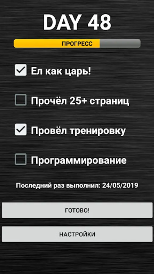 The application RD71DaysChallenge will help you go from the beginning to the end. No advertising and other unnecessary garbage - just you, and your motivation. Follow your dream and realize big goals with Road to the Dream 71 days!