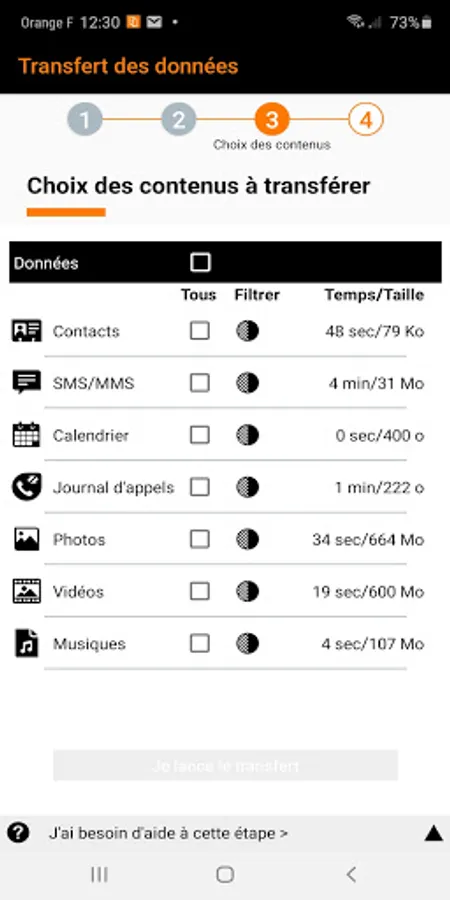 The data transfer application is reserved for Orange customers