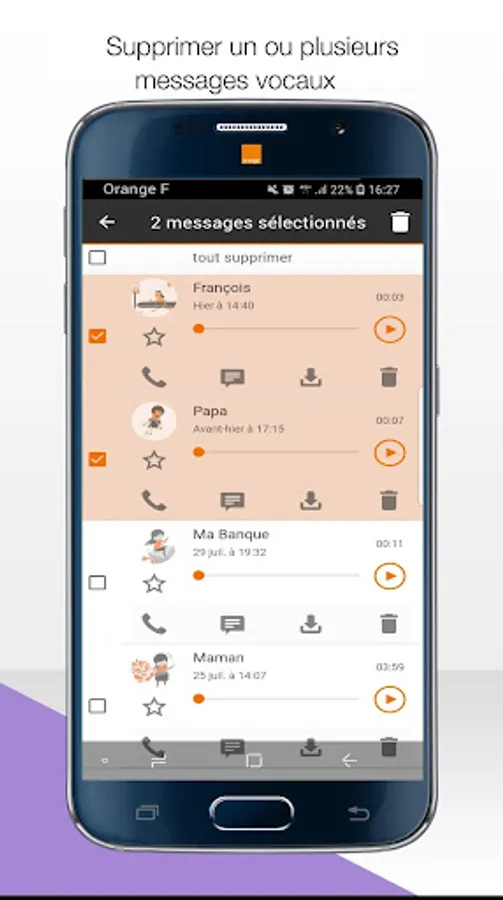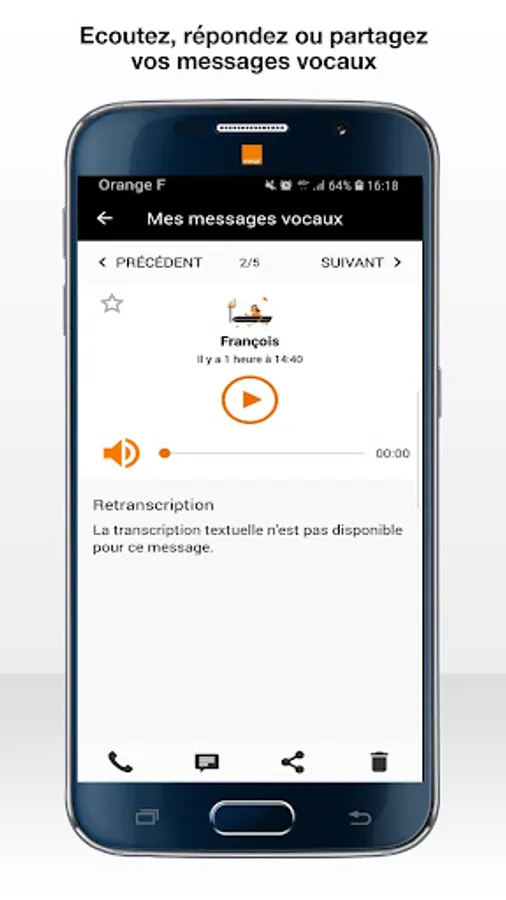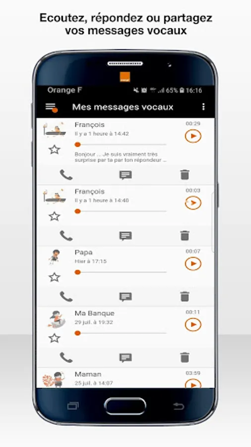 With Orange Visual Voicemail, see at a glance the list of all your voicemail messages and listen to them in the order you like!