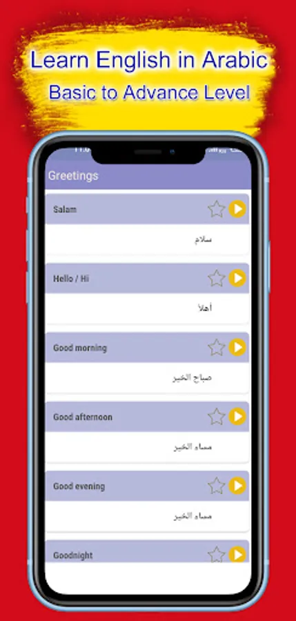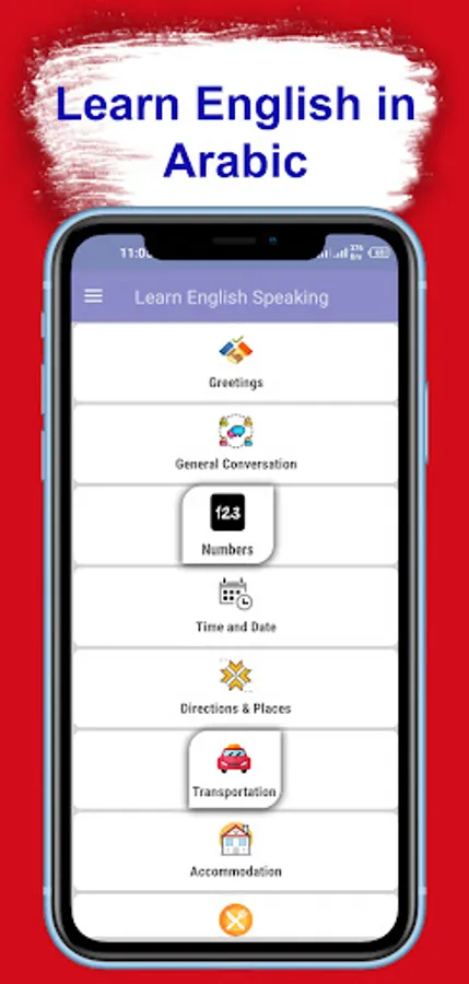 Learn Arabic from English is an app made specially for native Arabic speakers, who want to learn English in Arabic. Now you can Learn Arabic Language with ease and comfort. If you are wondering How to Learn Arabic Language in few days, you have come to the right place, now you can learn Arabic Online with the help of our application. This app will teach you how to speak English from Arabic.
