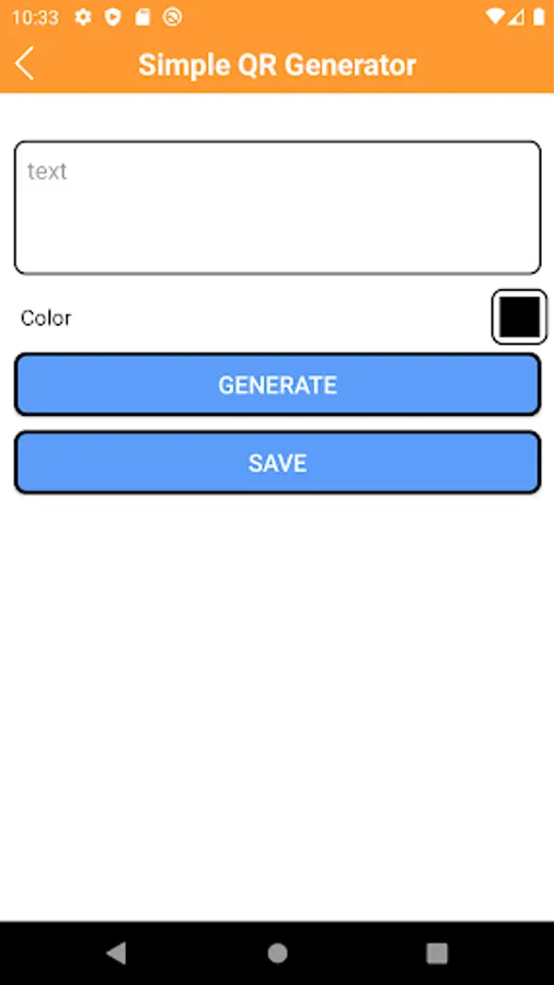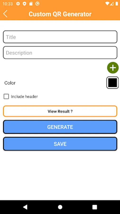 Create QR codes with one click with different types of custom colors. Save the QR code to your device. Create PDF of your QR codes with or without generated result
