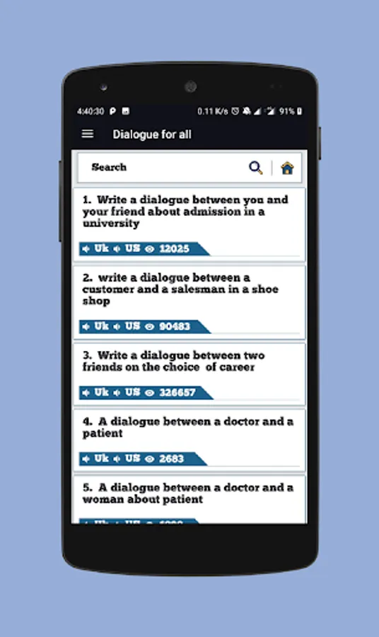 This is an free android app where you can find any kind of dialogue, with a great experience.