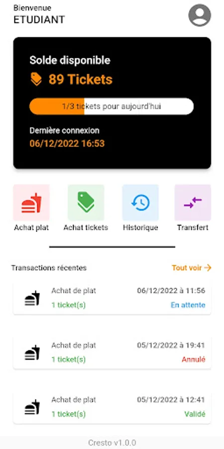 Cenou Resto is a digital platform for managing university restaurant services. It allows the use of virtual tickets by students in the various university restaurants of Cenou. It allows via an Android application or a web interface or even USSD, to pay for tickets and then use it with the various university restaurants across the country.