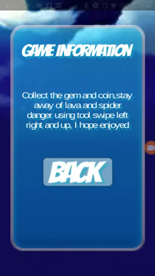 Collect the gem and coin,stay away of lava and spider danger using tool swipe left right and up, I hope enjoyed