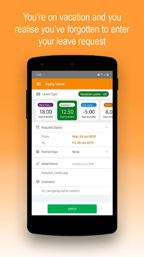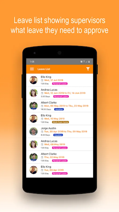 When you download the OrangeHRM Advanced mobile app, it gives you the ability to unlock functionality at your fingertips. You can apply for PTO, clock in or out, view timesheets, and so much more. These features will keep you up to date whenever you are on the go.
