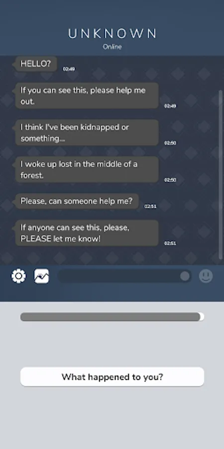 A call for help within a mysterious messaging app. Someone lost and wondering through a forest in a faraway place. And their destiny in your hands.
