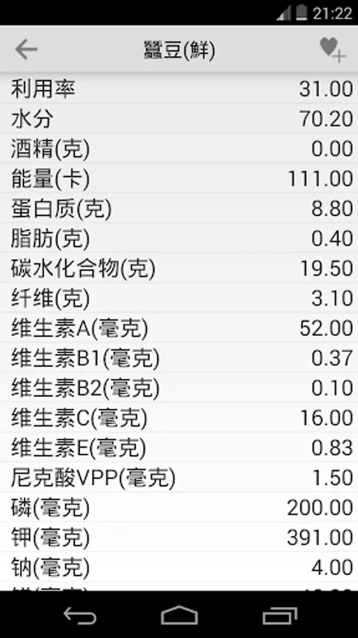 Note: The list of the middle finger is per 100 grams of food nutrients
