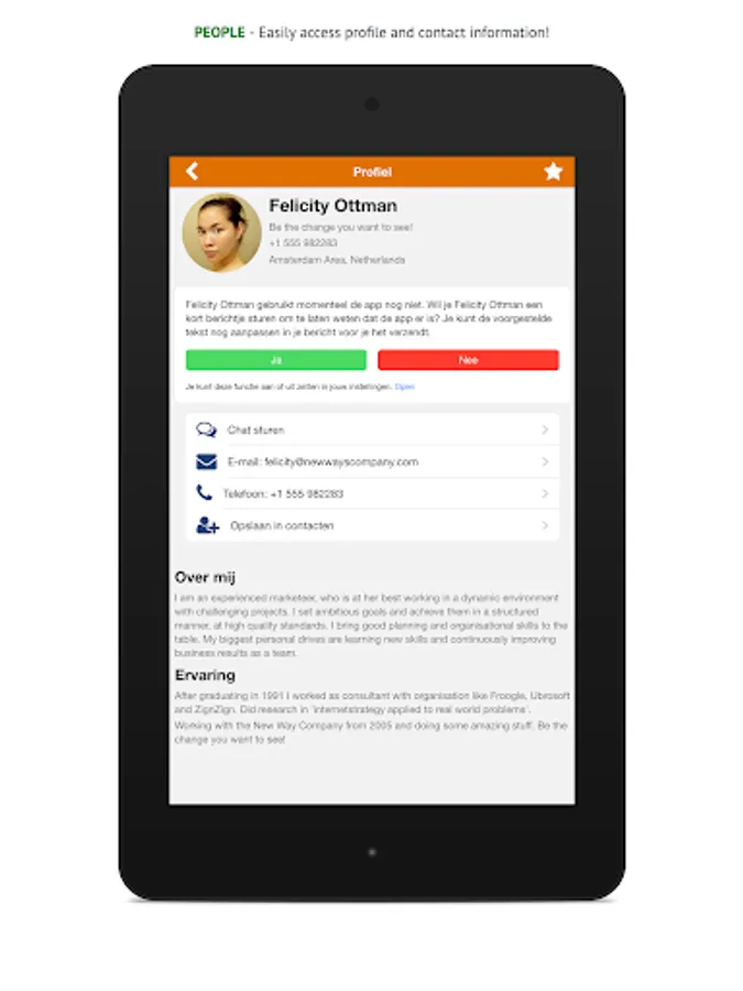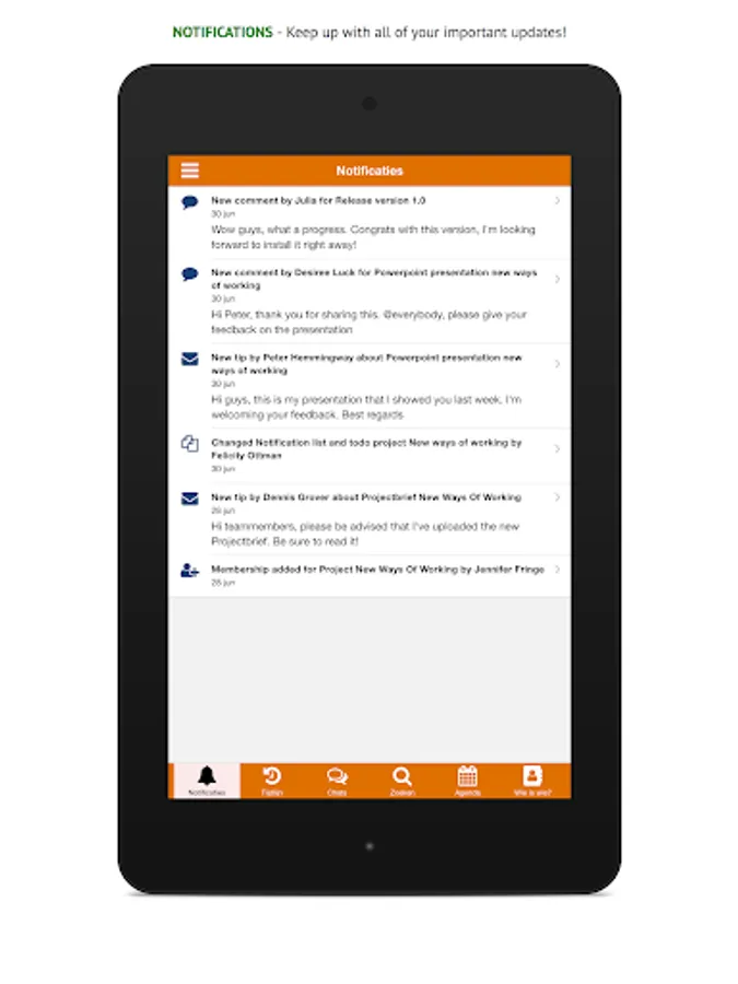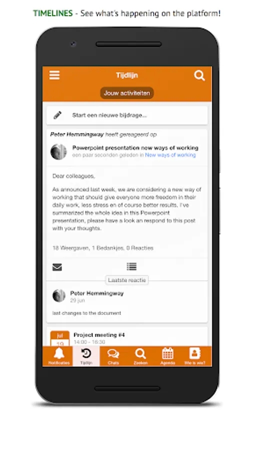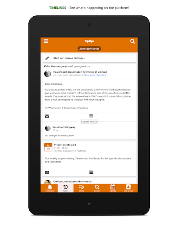 The JenV connect app helps you stay informed and in contact with your colleague. The app gives you access to the most essential functionality on the social intranet platform of JenV, such as: