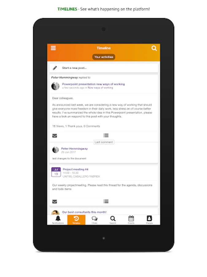 The Lev app by Levvel helps you to stay in touch with your colleagues and up to date! The app gives you access to the most essential functionality on the Lev platform, such as: