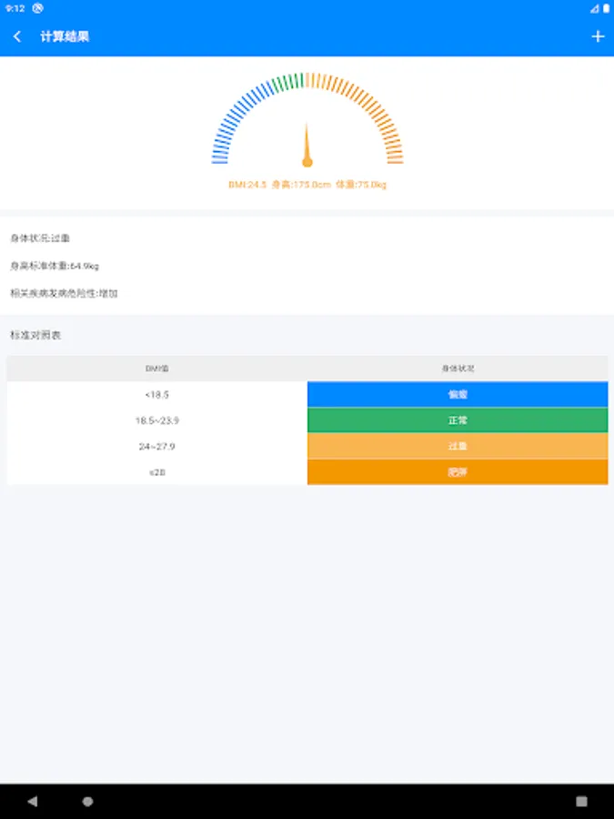 2 Standard weight calculation, based on height and weight, automatically calculates standard weight reference value, which is convenient for deciding to lose weight or gain weight