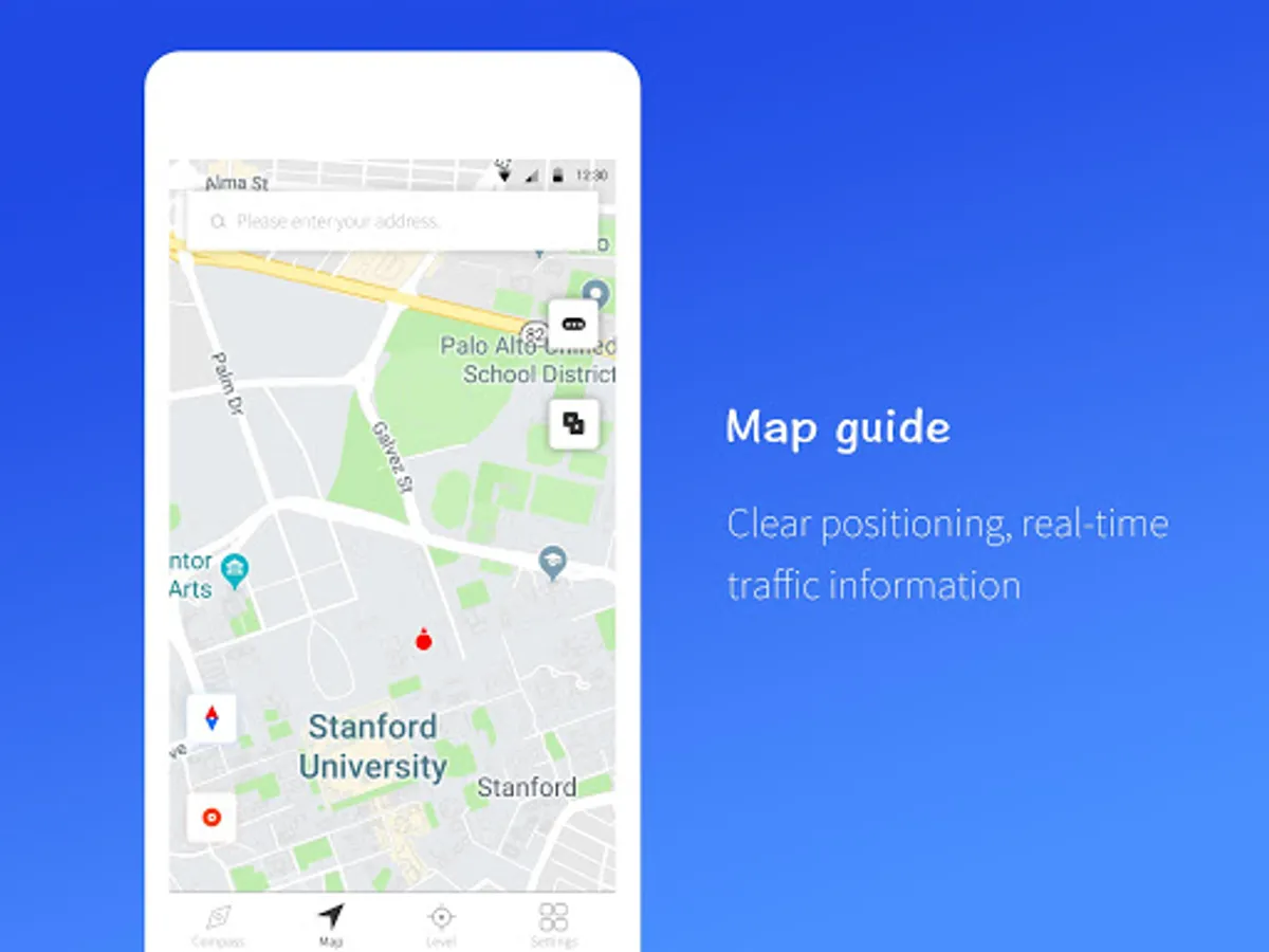 Compass, less memory. Support a variety of compass skins. Helps you identify the direction and is easy to use.