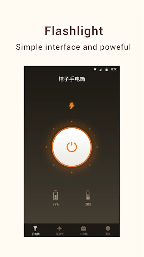 1 Mobile phone flashlight illumination, showing the remaining battery power, phone temperature. Intelligent lighting, intelligent power saving, and higher brightness.