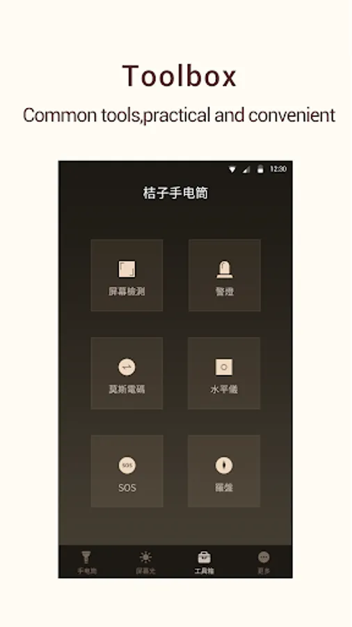 4 Super-utility functions such as warning lights, SOS, Morse code, level, compass, etc.