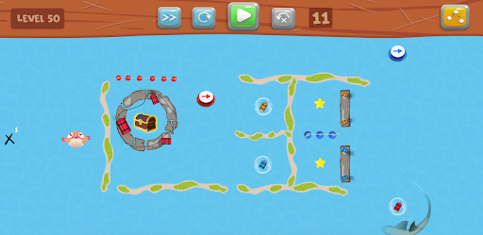 Help your minion to find the path to the treasure! Think carefully and build your own victorious path! Earn as many Gold Stars as you can!