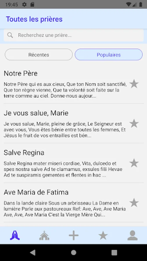 Find your favorite prayers, or add them if they don't already exist. They will be saved in the application and can be read by other users as well.