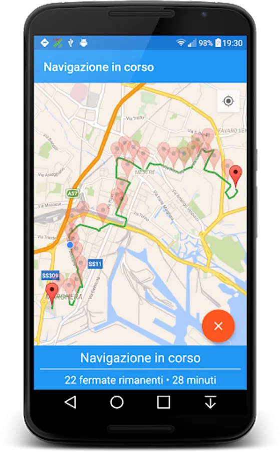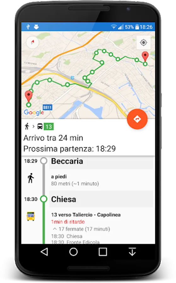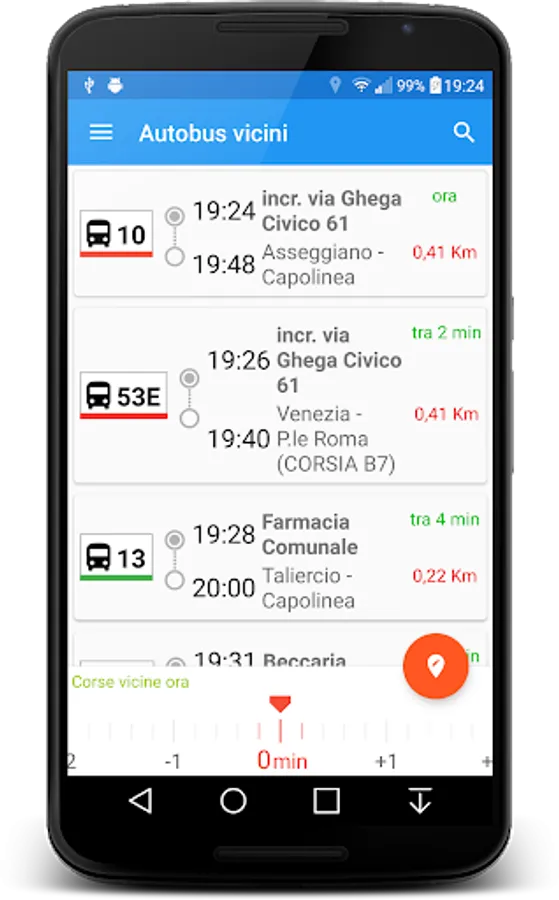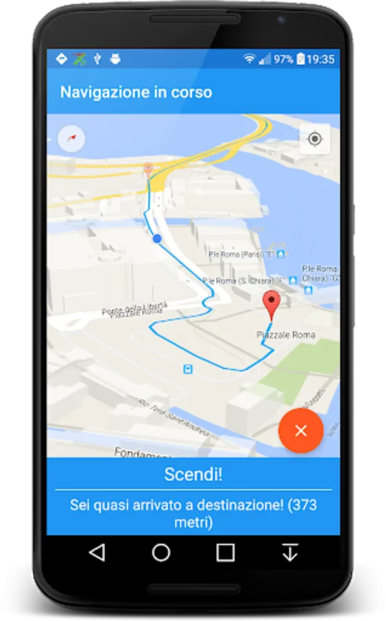 - Navigation In real time: thanks to the location you can dynamically receive notifications based on the path set, receiving route information on when to get off and the remaining time to reach your destination