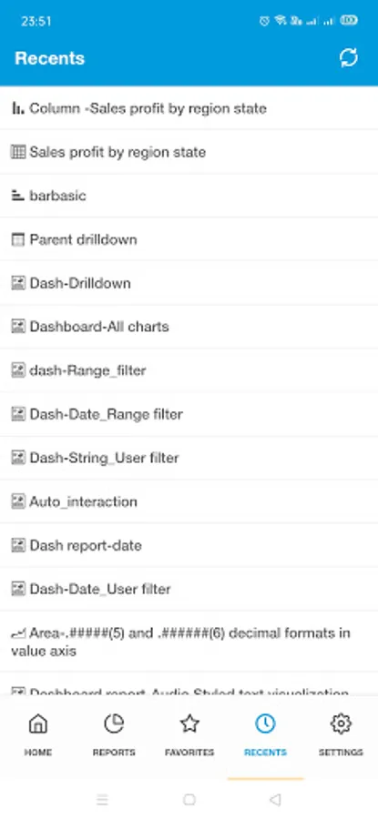 The user can add the reports to favorites and can as well access the recently viewed reports. The user can add multiple instances to login to the application.