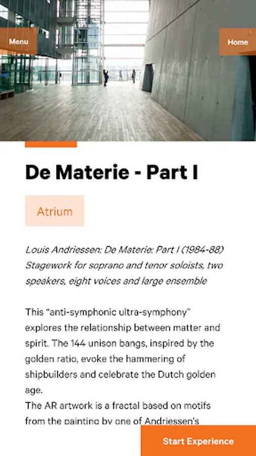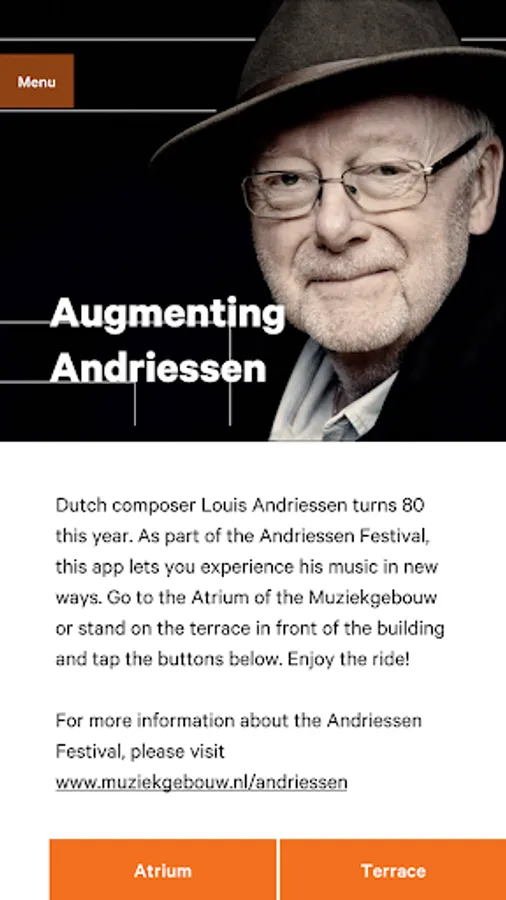 Dutch composer Louis Andriessen turns 80 this year. During the Andriessen Festival (23-26 May 2019 in Muziekgebouw aan ’t IJ, Amsterdam) this app lets you experience his music in new ways. The app can be used in two spaces in the building: the Atrium and the terrace in front of the building. Enjoy the ride!