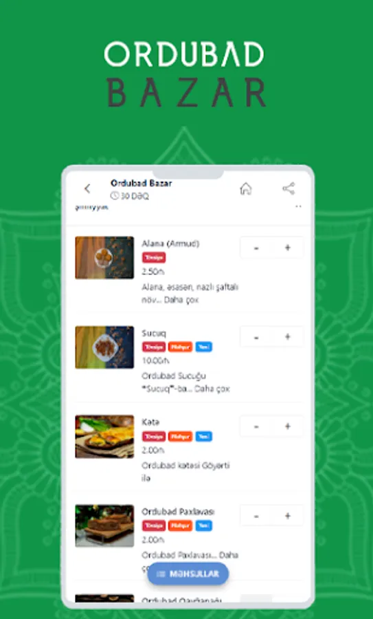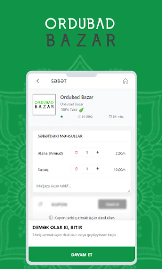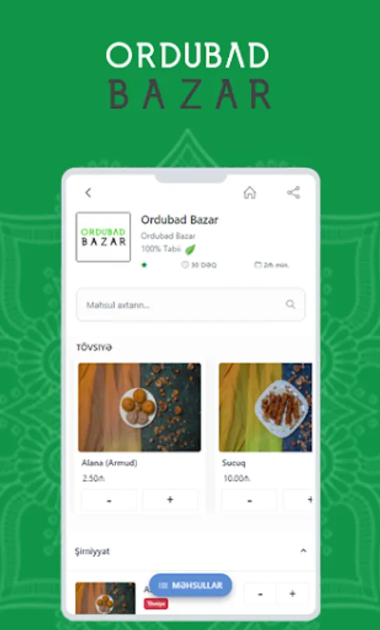 Ordubad Bazar is an online store that organizes the delivery of Ordubad products directly to your address. Using our application, you can order 100% Natural Ordubad blessings to your address.