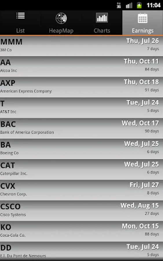 ✔ Earnings Tab to display upcoming earnings announcement dates.
