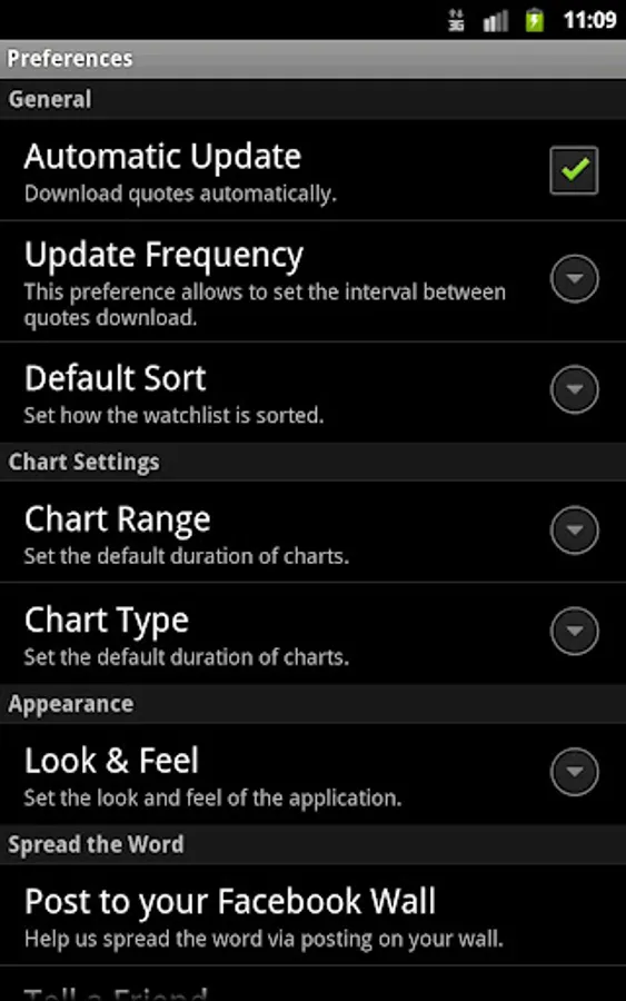 ✔ Set your charting and sorting preferences.