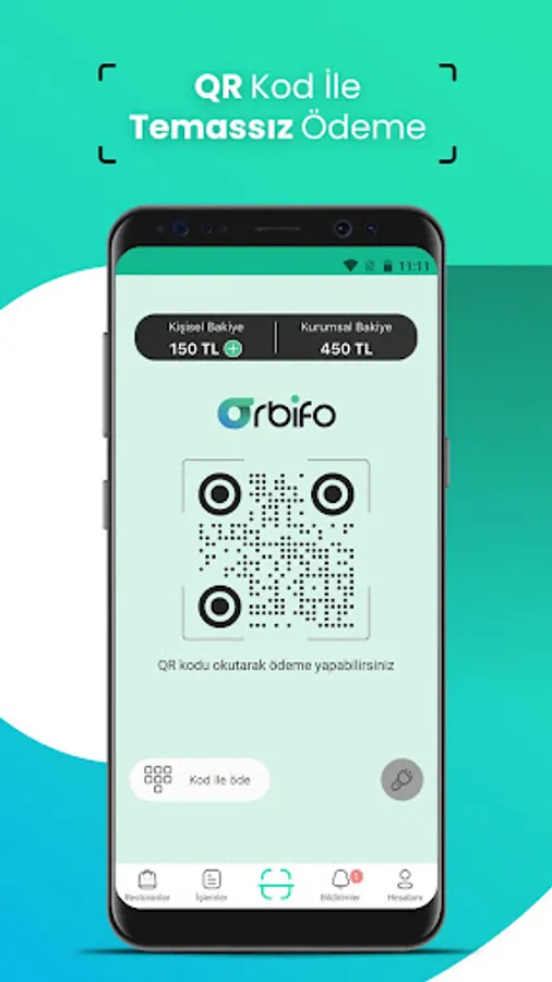 Orbifo is a system that allows payment via QR code. Users can only pay by downloading the application to their mobile devices and scanning a QR code from restaurants and workplaces where Orbifo is valid. To take your place in the Orbifo world, all you need is your smartphone; you don't need to carry physical cards anymore!
