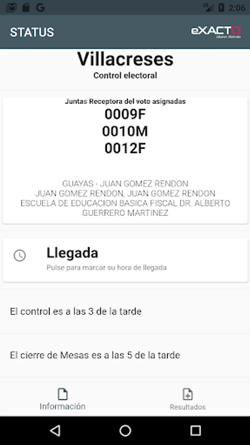 The application controls the electoral personnel in the voting centers indicating the operation of each electoral precinct, recording news or incidents and escalating to a higher level for its correct resolution.