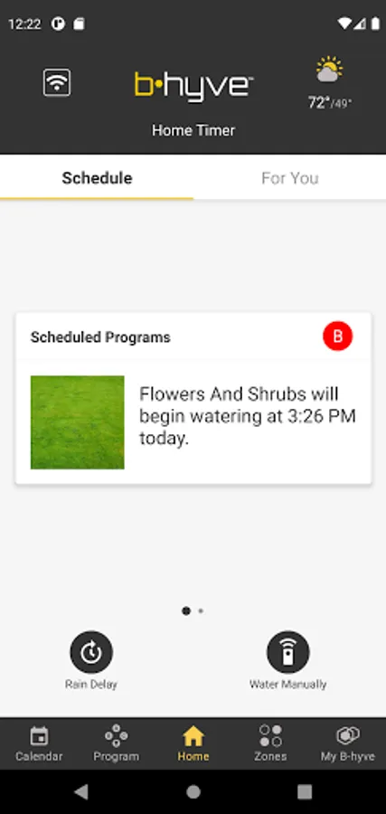 The B-hvye smart sprinkler timer app allows you to control or monitor your sprinklers from anywhere in the world with the convenience of your smart device.