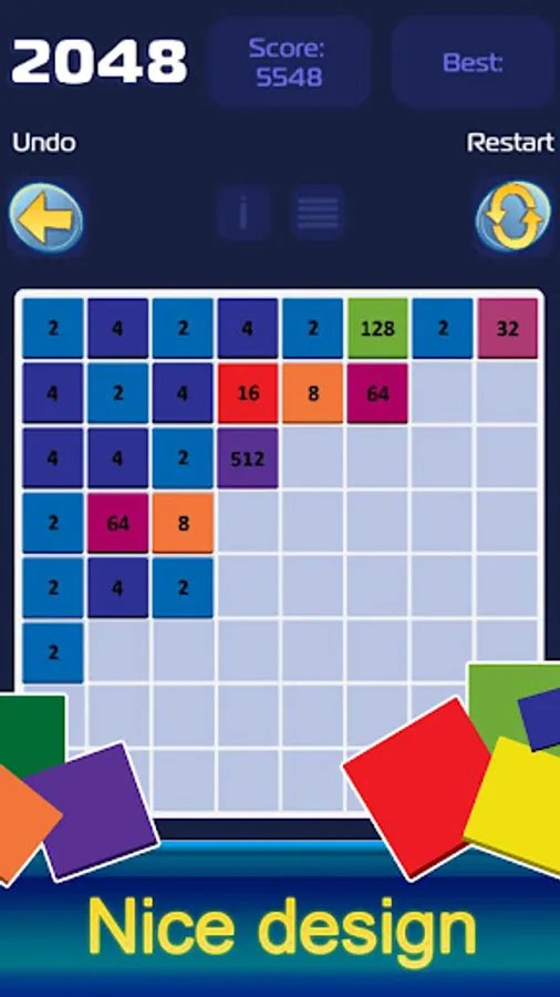 2048 - classic puzzle game that lets you spend your time, and develop logical thinking. The game features 5 levels of difficulty 4X4,5X5,6X6,7x7,8x8. Collect a combination of 1024, 2048, 4096, 8192, 16384, 32768 and more become a better player.