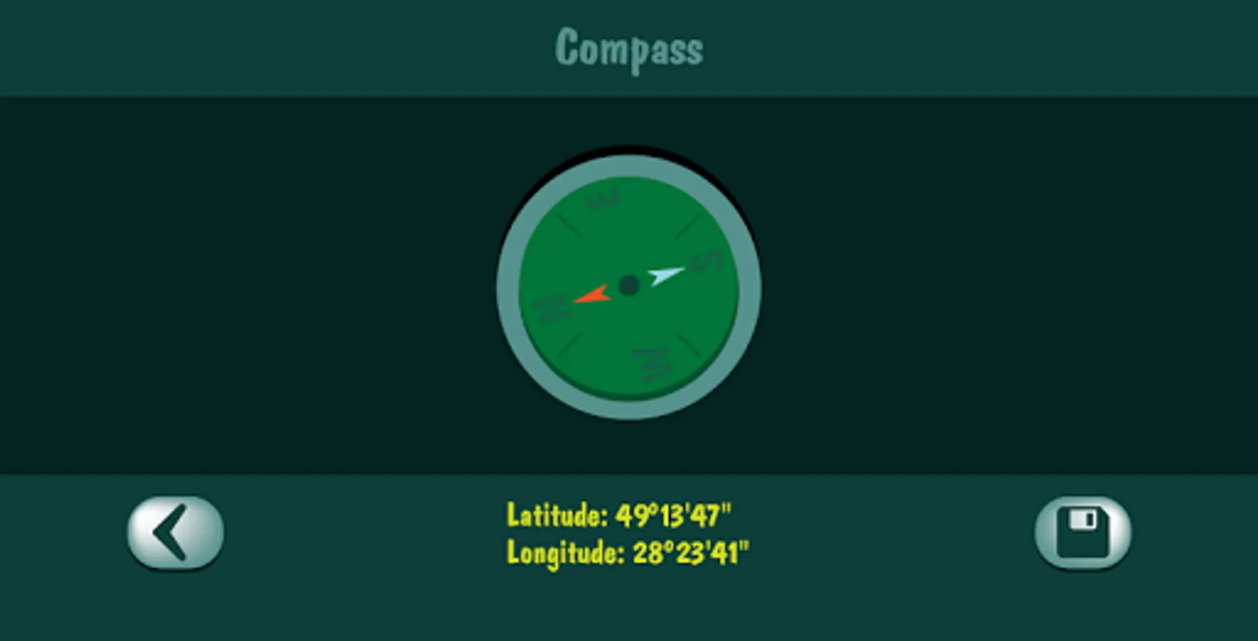 The compass will help you determine the coordinates of your location, save, leave a comment about your location, and share your coordinates with your friends.