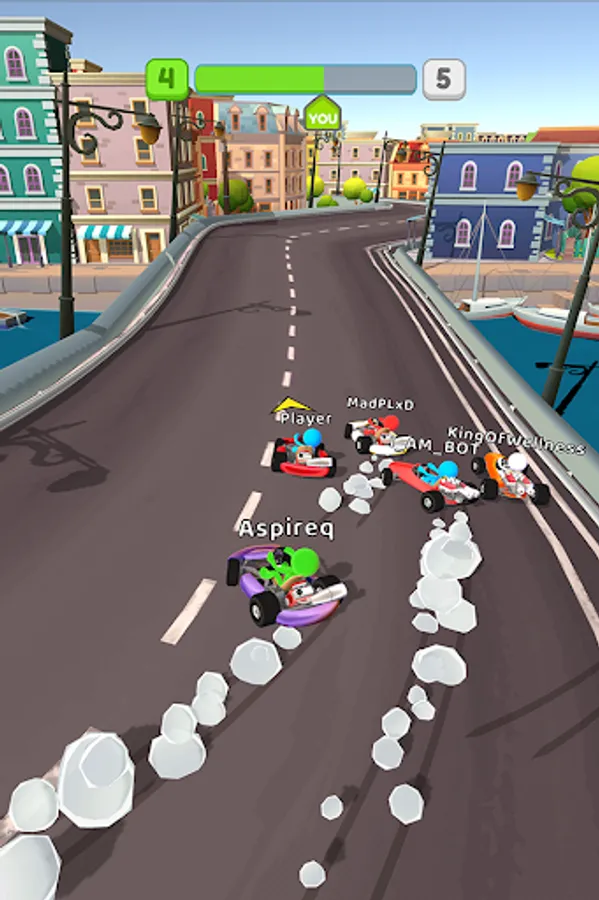 Outrun your opponents and overcome obstacles with ramps and boosters!