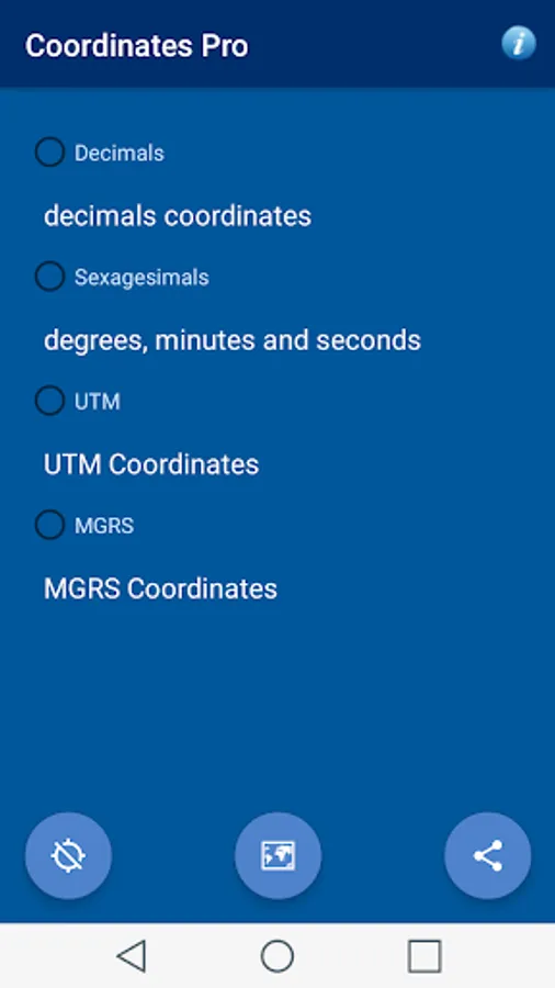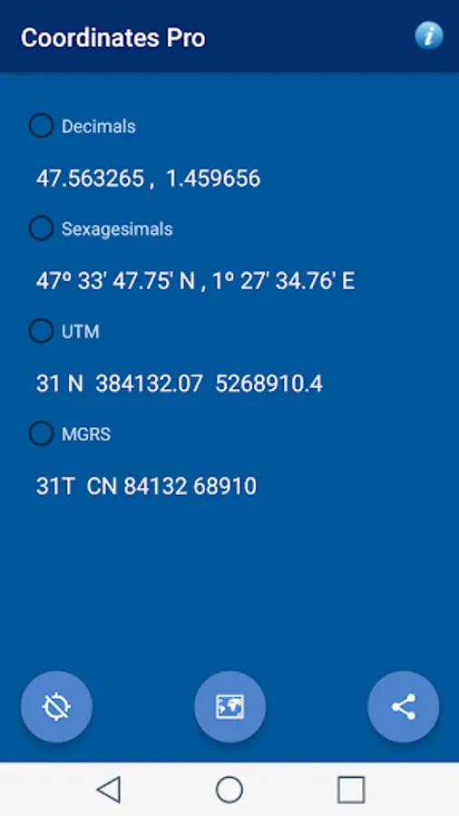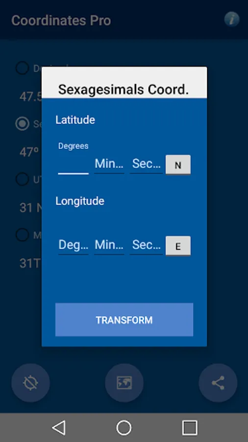 Converts decimal to sexagesimal coordinates (degrees, minutes and seconds) , UTM and MGRS coordinates.