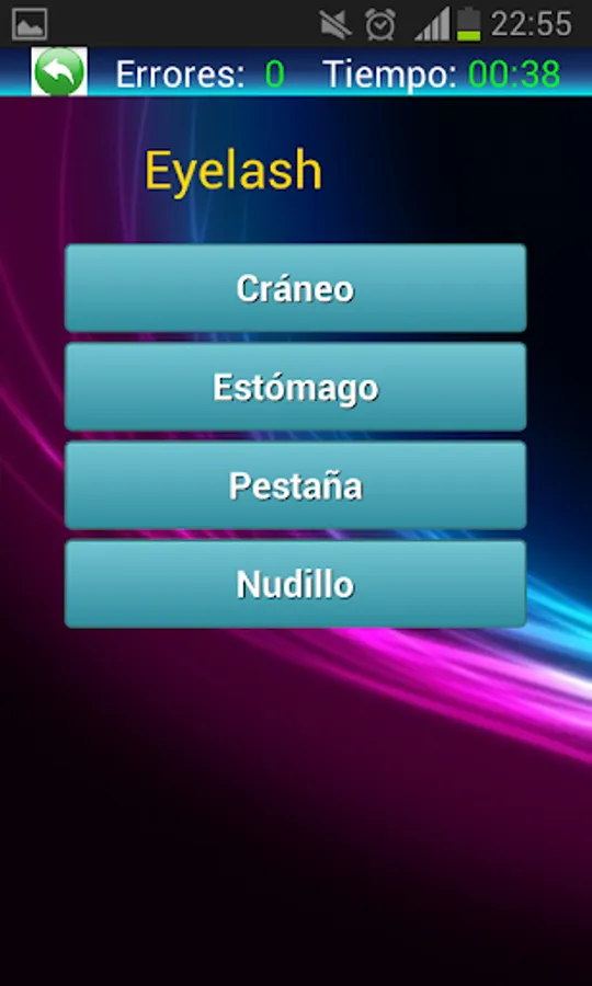 Practice your Spanish vocabulary in a fun way. Guess the correct translation between the four options presented to you in the shortest possible time.