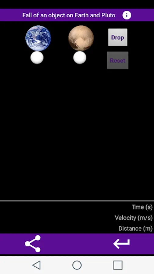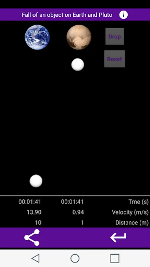 Visualize an animation the different speed of free fall of a body on Earth compared to that of planets and satellites in the Solar System.