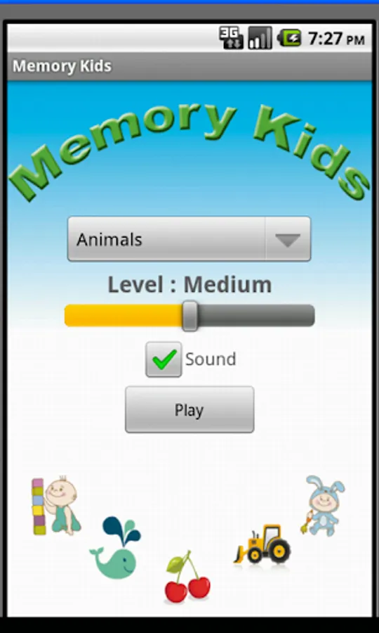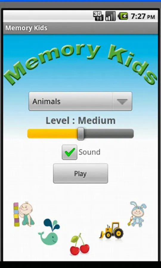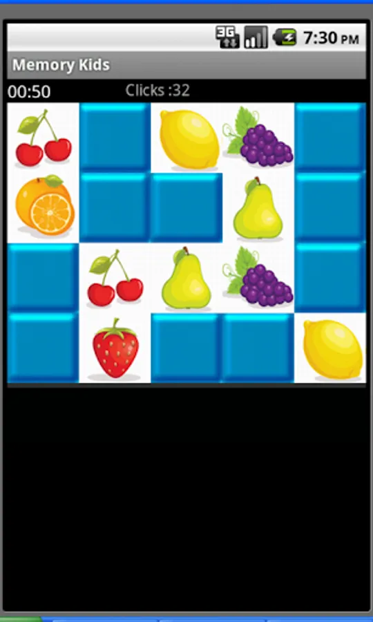 Memory game. Find the pairs of animals, fruits, vehicles...