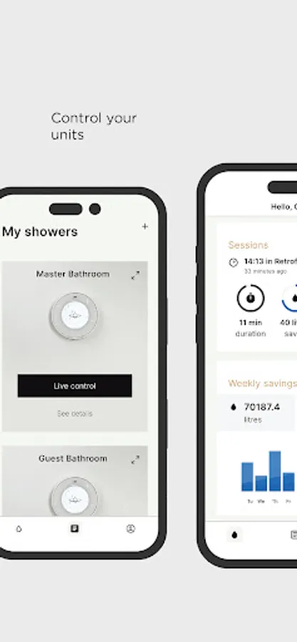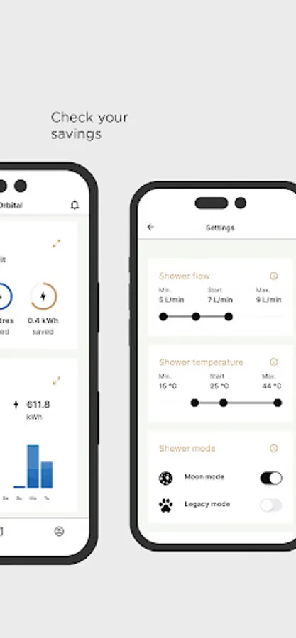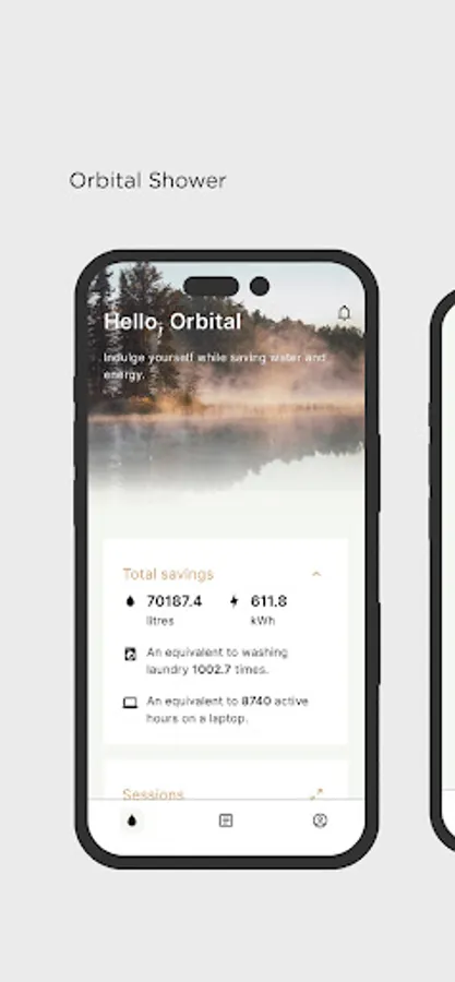 The My Water app tracks the performance of your Orbital Shower including water saved and consumed.