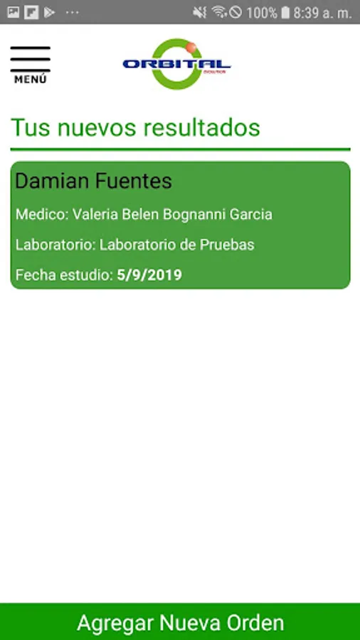 Through this application you can consult the results of your studies conducted in different laboratories that use the Orbital Lab systems or are linked to it.