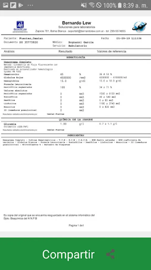 * Consult the results of the study of a patient by scanning the QR code present on the admission voucher given in the corresponding laboratory.