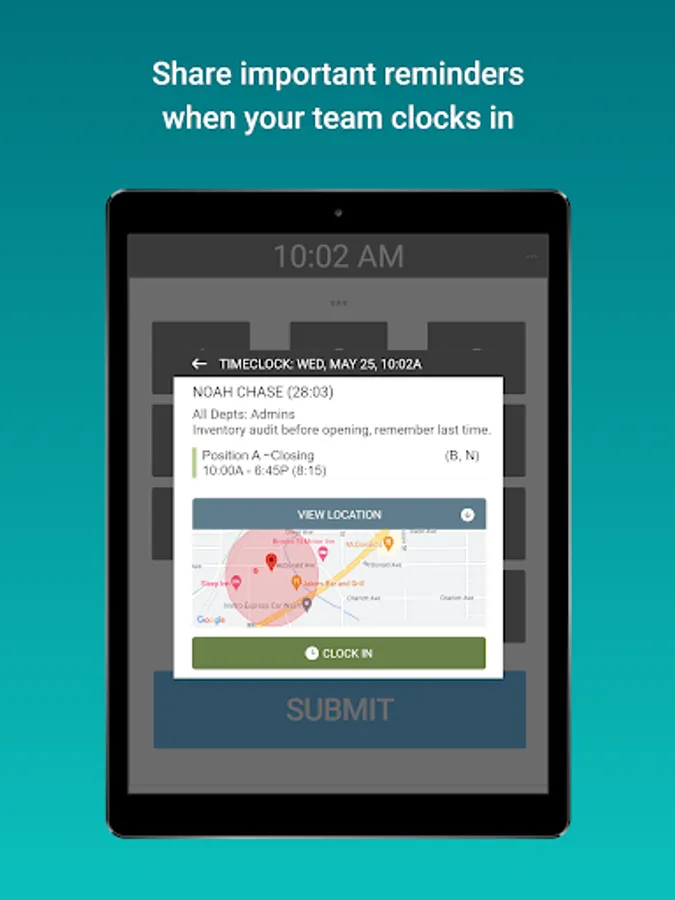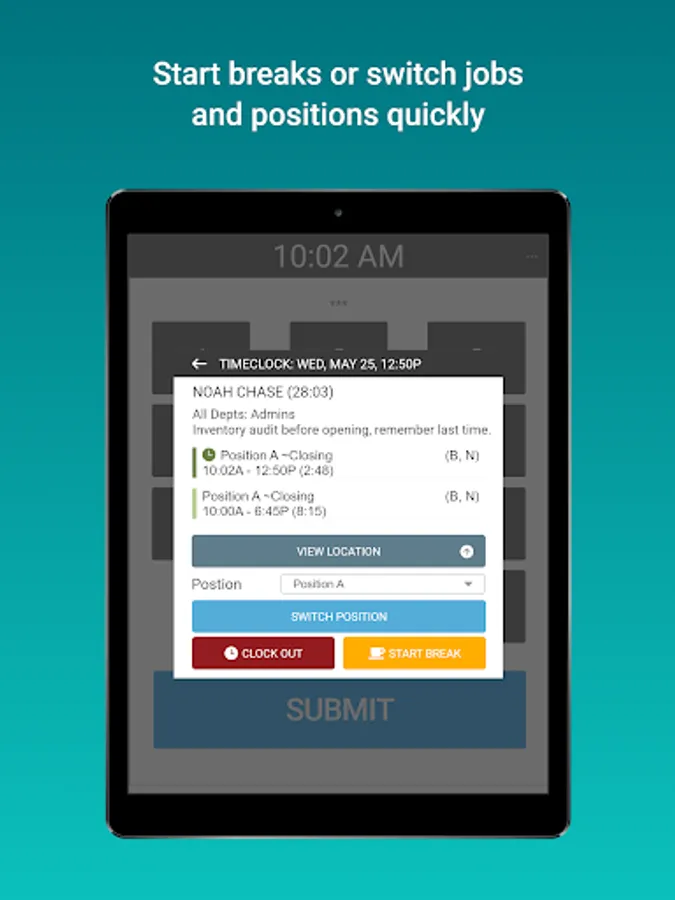 Download the app on any web-enabled device, and set up your easy time clock stations anywhere around your store or business location. Employees can get on the clock in seconds, review Daily Notes and see who they'll be working with for that shift.