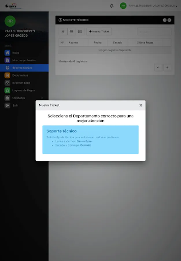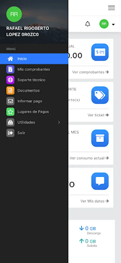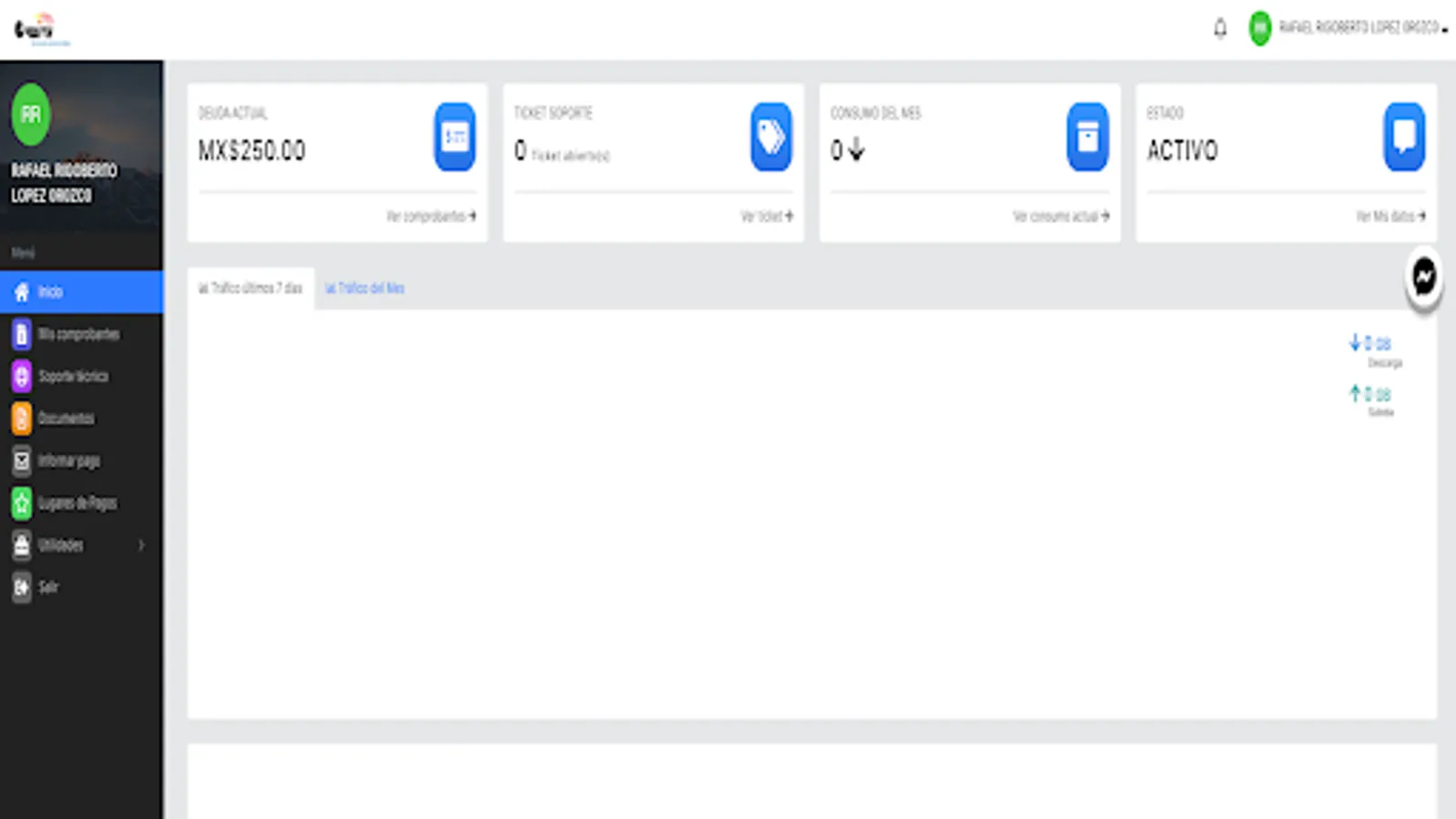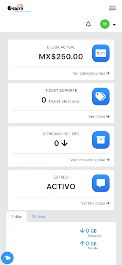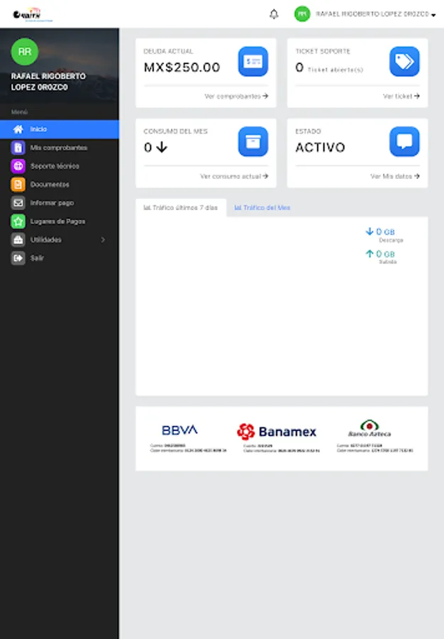 Here you can review your payment receipts, download your invoices, report network problems, see your internet consumption, open a support ticket, among other functions.
