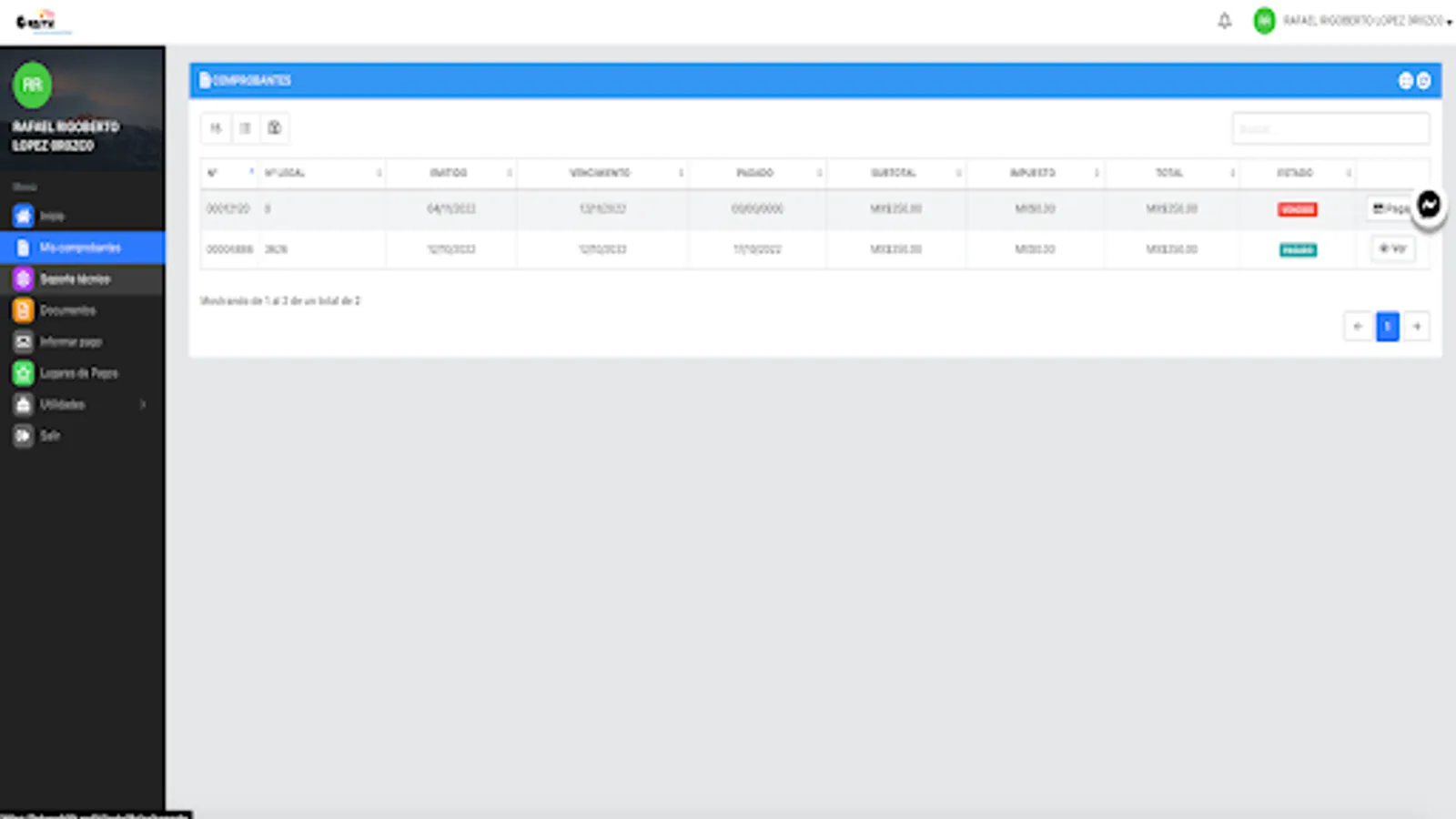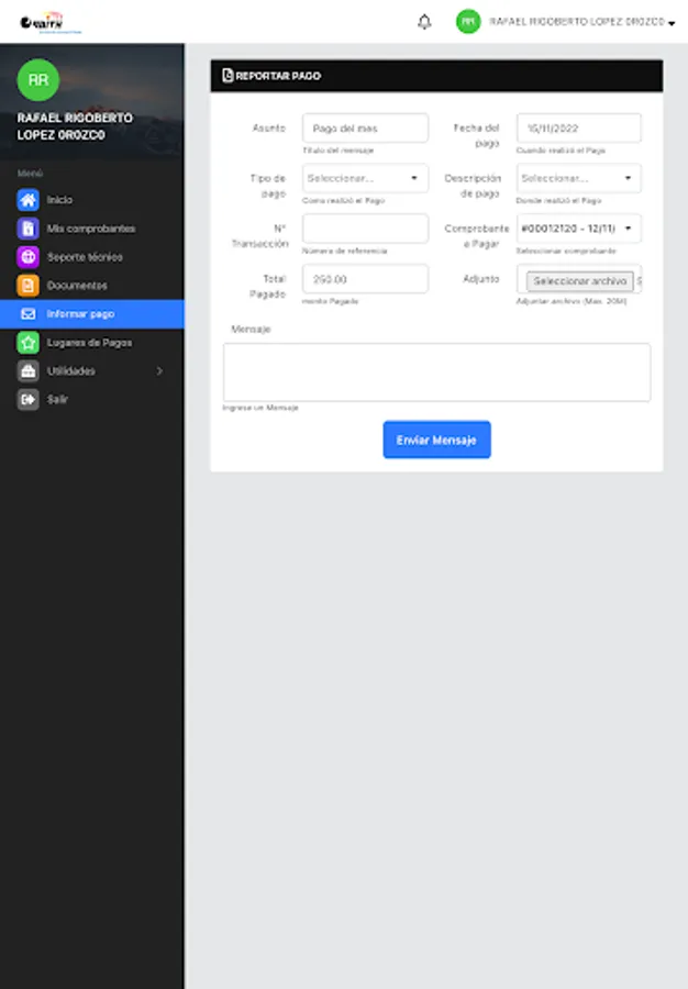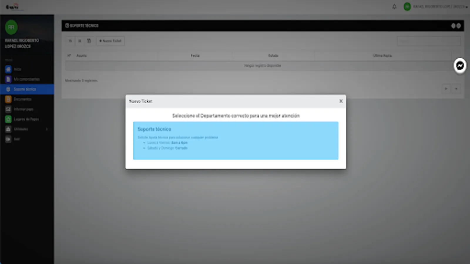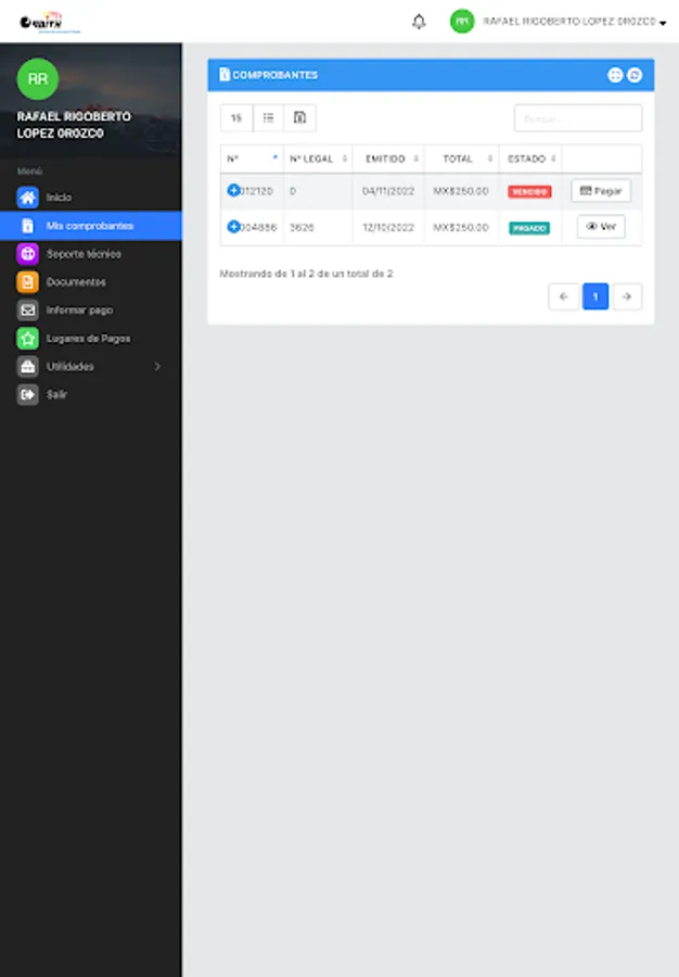 Here you can review your payment receipts, download your invoices, report network problems, see your internet consumption, open a support ticket, among other functions.