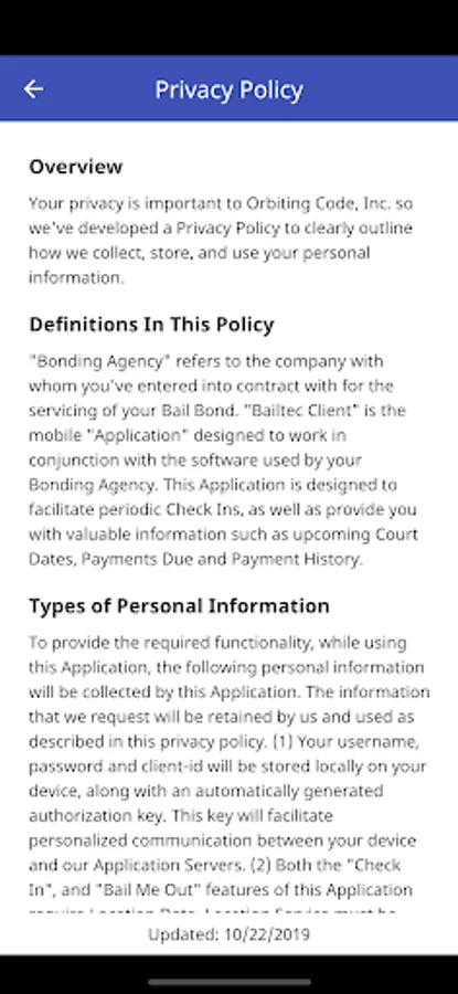 You can view the current privacy policy at: https://bailtec.com/apps/bailtec-client/privacy-policy.php